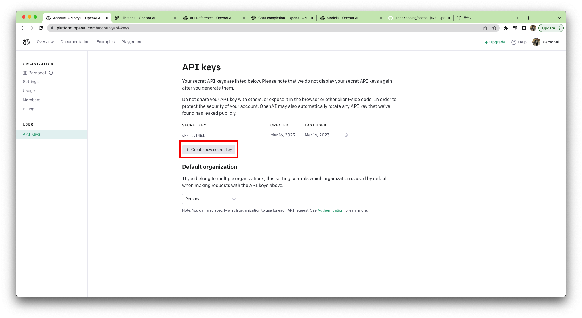 openAi로 이동해 api key를 발급받습니다.