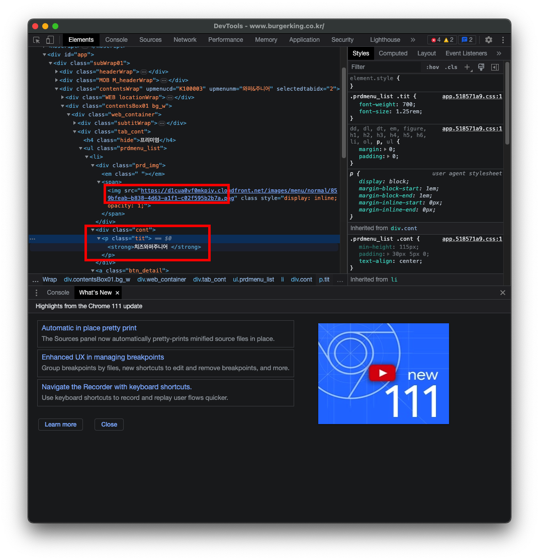 먼저 테스트는 버거킹 사이트를 사용했습니다.