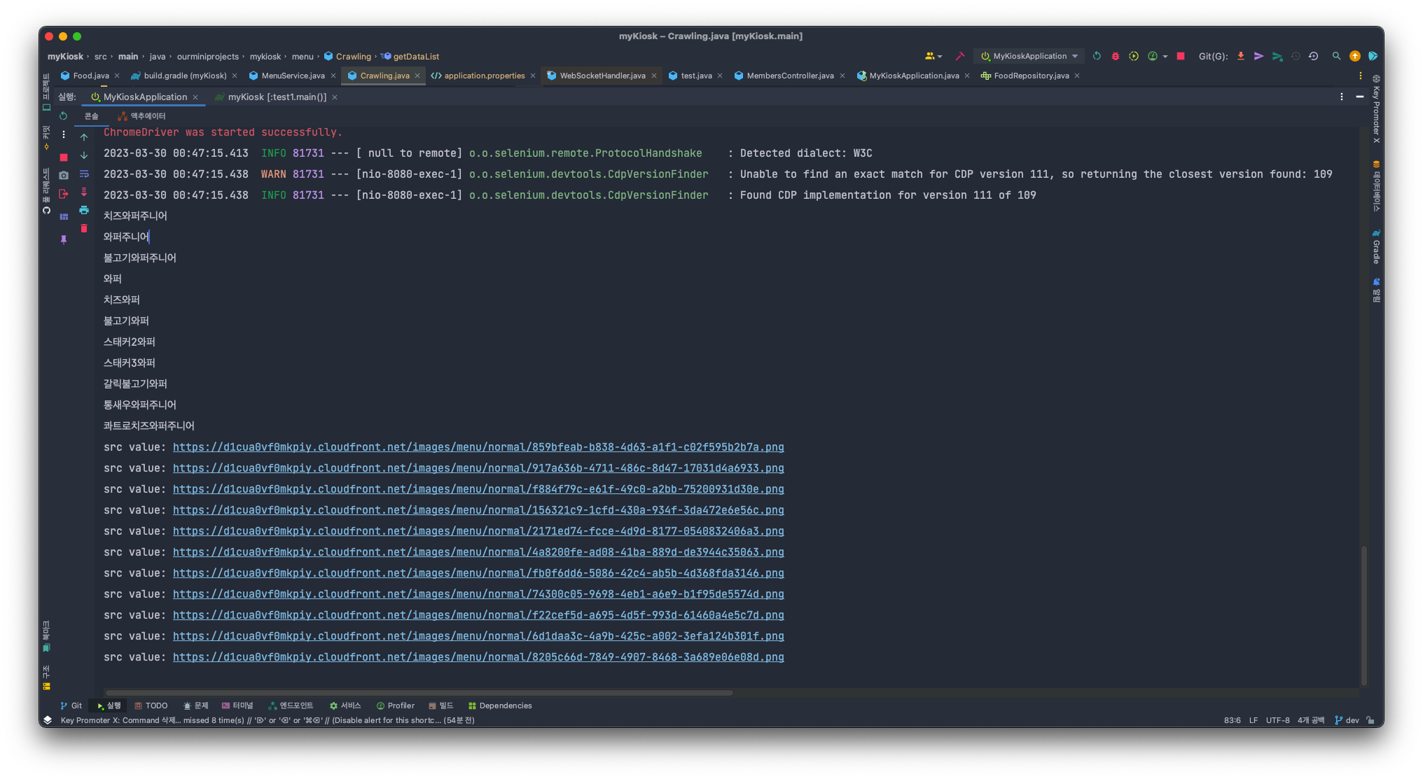 전 아래와 같이 코드를 작성하고, 특정 uri로 get요청을 보내면 crawling.process()가 실행되도록 했습니다.
