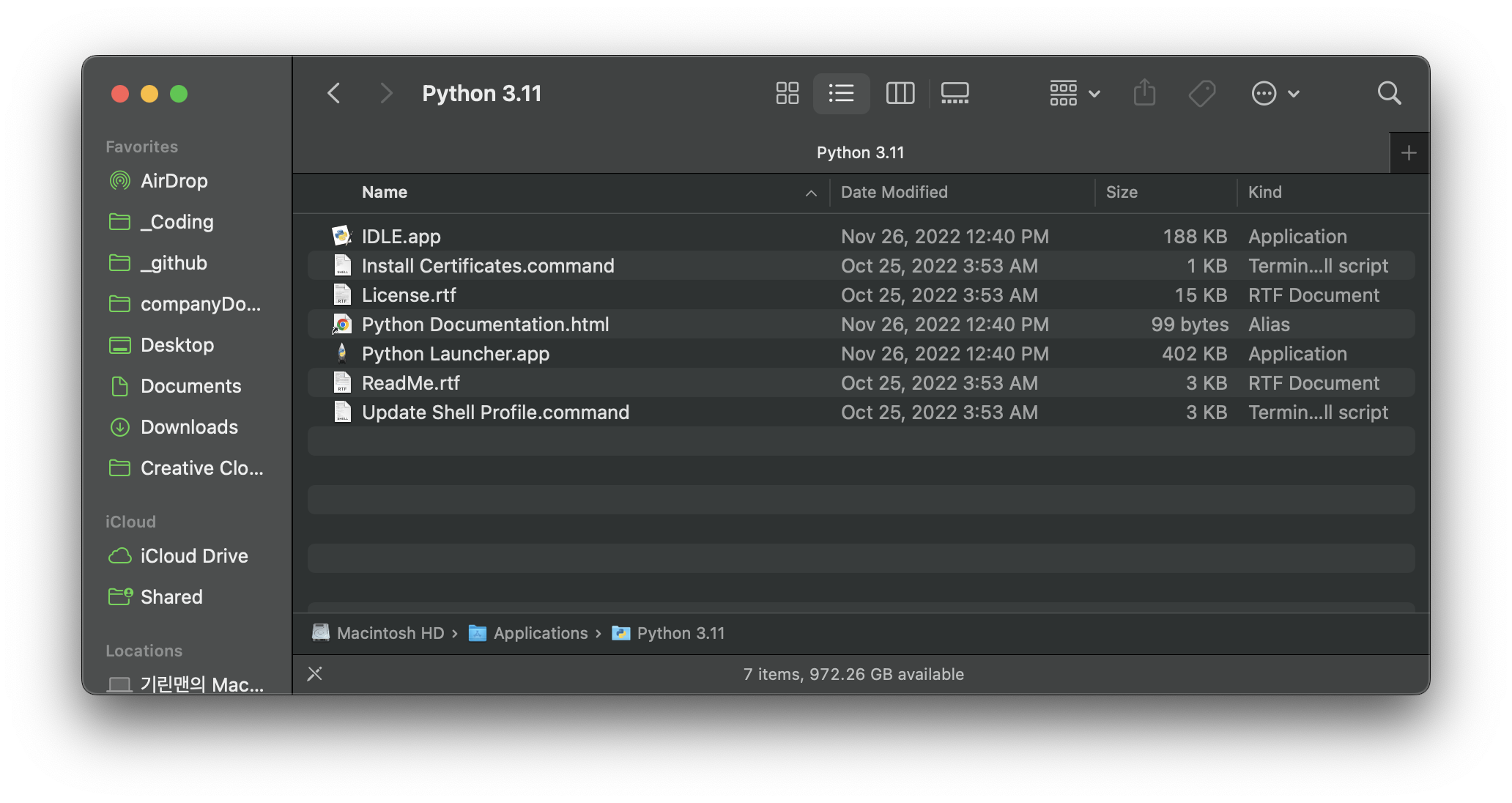 파이썬은 ssl 연결을 설정할때 필요한 인증서를 포함하고 있다. 이 인증서는 내가 누구인지 증명할 때 사용된다고 하는데, 특히 mac os에서는 파이썬을 설치한 후에 별도로 인증서를 설치해야 하는 경우가 많다고 한다. 이때문에 파이썬이 SSL / TLS 연결을 설정하려고 할 때 "SSL: CERTIFICATE_VERIFY_FAILED"와 같은 오류가 발생할 수 있댄다.