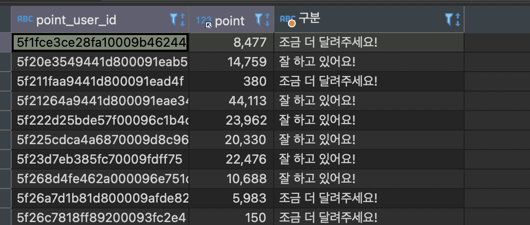 비어있는 데이터: 해당 데이터의 user_id 필드값이 point_users 테이블에 존재하지 않는 경우