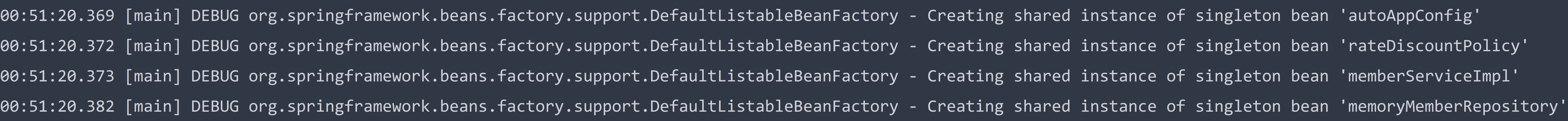 로그를 통해 빈으로 등록되는 것을 확인할 수 있다.