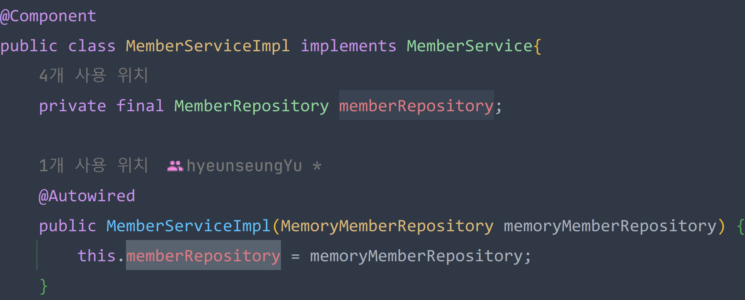 (위 이미지에서는 memberRepository와 같은 타입을 찾겠지!)