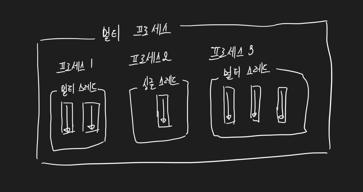 그리고 한 프로세스 내에서 두 가지 이상의 작업을 처리하는 멀티 태스킹이 가능한 애플리케이션도 있다.