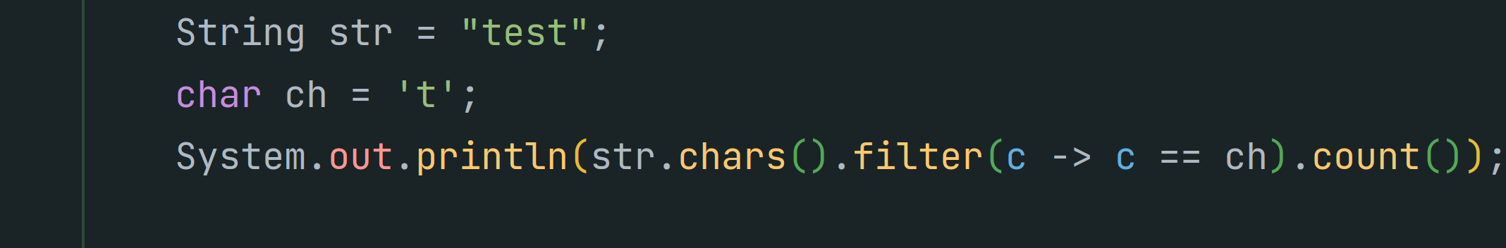이렇게 특정 문자열에 포함된 char의 갯수를 가져올 수 있다.