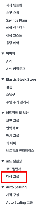 좌측 네비게이션 바에서 대상 그룹을 선택하고 대상 그룹을 생성합니다.