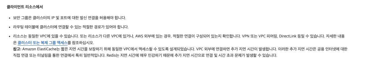 kirinman 2023. 2. 25. 11:461.elasticache 연결 안됨